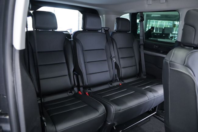 • Asientos traseros de tres plazas de tipo individual+banco desmontables de orientación delantera ajuste longitudinal manual con banqueta fija, respaldo abatible asimétrico, respaldo abatible a posición de mesa, banqueta/respaldo plegable hacia delante y ajuste manual del respaldo